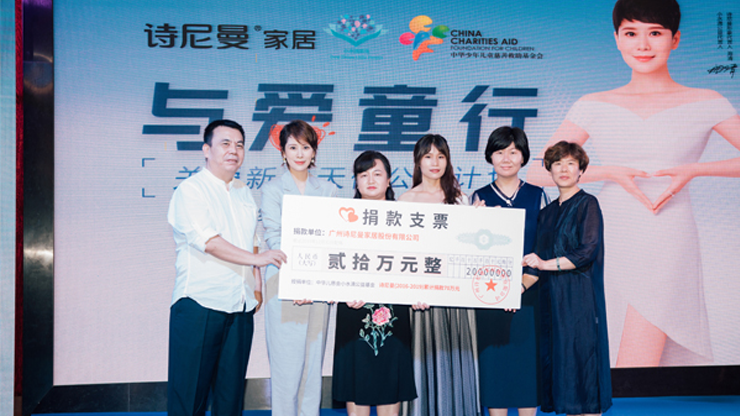 詩(shī)尼曼積極履行社會(huì)責(zé)任,為社會(huì)持續(xù)創(chuàng)造價(jià)值。2012年積極響應(yīng)國(guó)內(nèi)影響深遠(yuǎn)的“用愛(ài)照亮明天”光頭行動(dòng), 2013年鼎力支持“陽(yáng)光天使、點(diǎn)燃?jí)粝搿弊x書站建設(shè),2015年首創(chuàng)關(guān)愛(ài)4類家庭健康居家活動(dòng)日, 2016年持續(xù)對(duì)“小水滴新生”進(jìn)行公益資助,2018年與中華兒慈會(huì)發(fā)起“與愛(ài)童行”關(guān)愛(ài)新生天使公益計(jì)劃, 并將“詩(shī)尼曼全國(guó)旗艦店工藝角”規(guī)劃落地,持續(xù)為小水滴公益進(jìn)行資金和物資資助。近十年來(lái),詩(shī)尼曼一直 關(guān)注并助力兒童治療、文化教育等慈善公益。